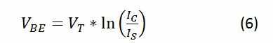 曾解釋過,晶體管的VBE取決于集電極電流,如等式6所述: