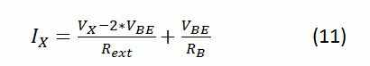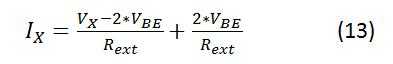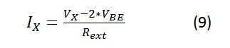 現(xiàn)在可暫時忽略電阻器RB,等式9按照以下方式計算導(dǎo)入本設(shè)置中的參考電流: