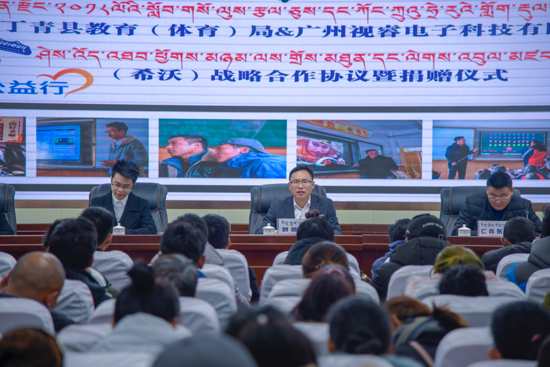11月13日,西藏自治區丁青縣教育局與希沃在丁青縣巴鄉達中心小學簽訂戰略合作暨捐贈協議,雙方就優質資源共建共享、教育教學方式變革、教師隊伍信息化建設的深度合作簽訂了戰略合作協議。隨后又舉行了“2018希沃公益行”捐贈儀式及“希沃公益行學!睊炫苾x式,丁青縣教育局劉順武局長、仁青東智副局長、電教站次仁多吉站長以及丁青縣一百余位中小學老師參與本次儀式。