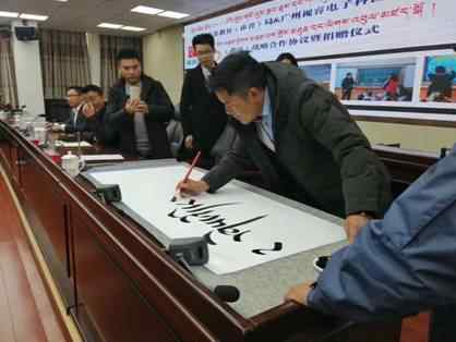 丁青縣教育局劉局長與希沃公益行代表為巴達鄉中心小學頒發了“希沃公益支教項目學!钡呐曝。巴達鄉中心小學的羅松江村校長現場為希沃作了藏文書法創作,用藏文寫下了“希沃”。在藏文中,“希沃”的音譯意思是 “知識的光芒”。相信通過駐校交流、軟件培訓、現場磨課、集中培訓等方式,此番公益之行能借助教育信息化的力量,為雪域高原上的師生們點亮知識的光芒。