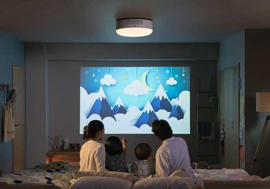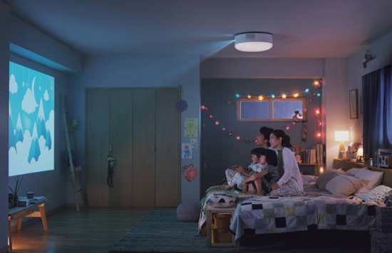 除了Z6,極米科技與百度在日本子公司 popln 出品了一款名為 popln Aladdin 的智能投影吸頂燈,也同樣獲得了日本Good Design Award設計獎。這款吸頂燈結(jié)合了投影和 harman/kardon音響系統(tǒng),采用日本統(tǒng)一的吸頂燈接口,安裝極其方便,不多占用家里一分空間,很好地與居家生活融為一體。