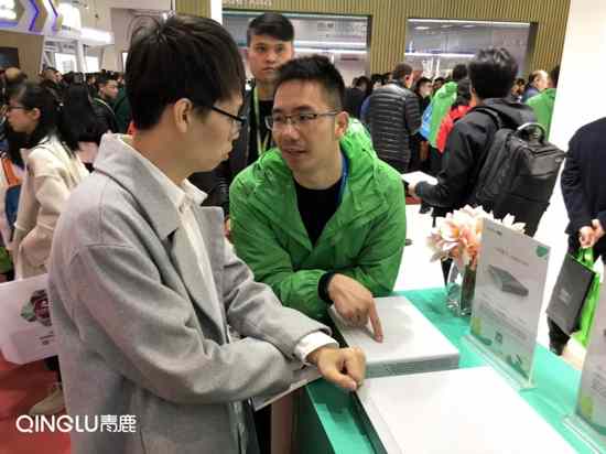青鹿工作人員向觀眾介紹青鹿智慧課堂產(chǎn)品