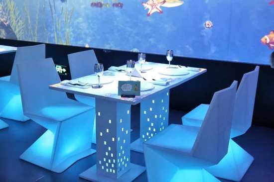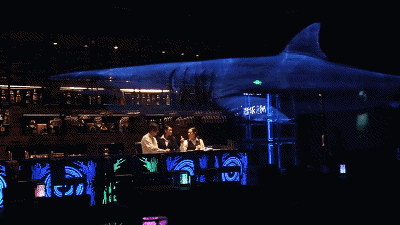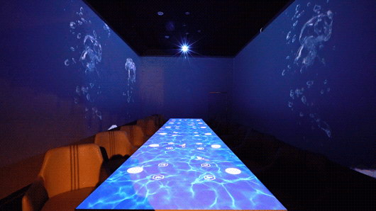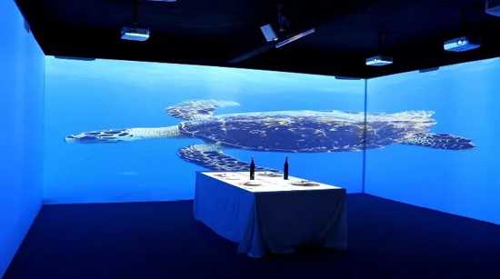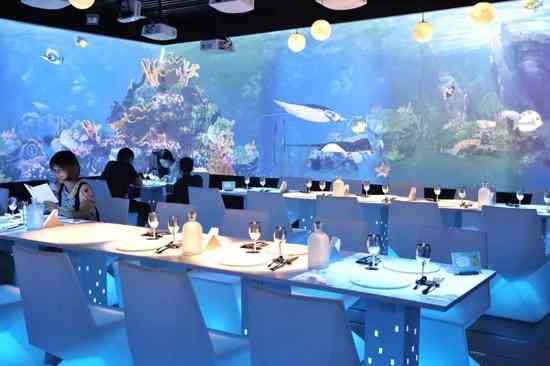 在中國,沉浸式餐廳也越來越受餐飲商家的青睞,廈門的一家潛藏在商場里的“海洋館”,3D全息投影像海水般將人環繞,一瞬間就到了海底世界,水草搖曳,魚兒泛游其中。