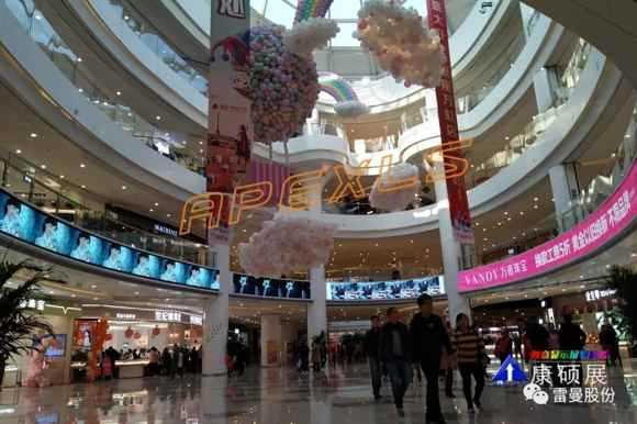 此兩塊LED創意顯示屏均采用無縫拼接技術,畫質細膩且流暢、色彩絢麗,也是整個商場的最佳廣告位,屏體循環播放各類宣傳視頻或商家廣告,在提升商場的品味的同時,也為商場帶來巨大的廣告收益。