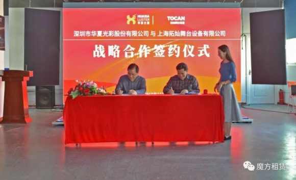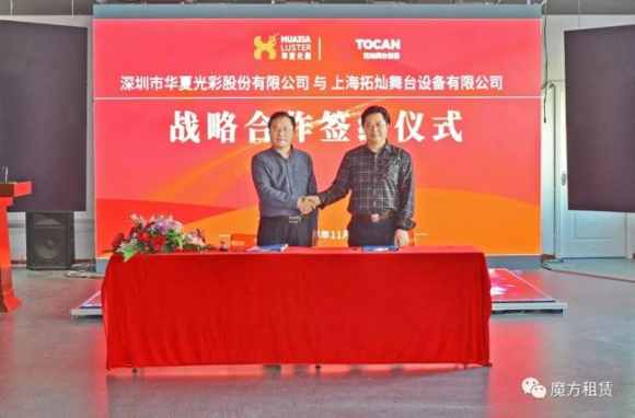 11月29日下午,深圳市 華夏光彩股份有限公司與上海拓燦舞臺(tái)設(shè)備有限公司舉行戰(zhàn)略合作簽約儀式 ,此次簽約分別由華夏光彩租賃事業(yè)部鄧?yán)鬣嚳偤蜕虾M貭N舞臺(tái)設(shè)備高福啟高總進(jìn)行簽約,此次簽約將分別結(jié)合雙方的生產(chǎn)優(yōu)勢(shì)、團(tuán)隊(duì)優(yōu)勢(shì)和渠道優(yōu)勢(shì),為L(zhǎng)ED租賃客戶提供快捷和即時(shí)的專業(yè)服務(wù),一起為華夏光彩租賃事業(yè)助力發(fā)聲。