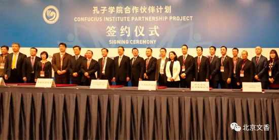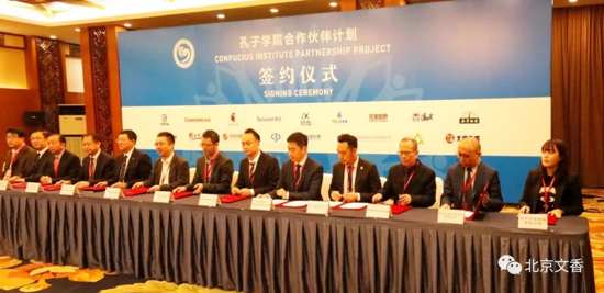 大會期間推出“孔子學院合作伙伴計劃”,旨在促進中外人文交流,推動世界多元多彩的文明發展,鼓勵社會各界積極參與孔子學院建設。北京文香副總裁張軼君先生代表北京文香上臺,與孔子學院總部副總干事、國家漢辦副主任馬箭飛簽署了合作協議。