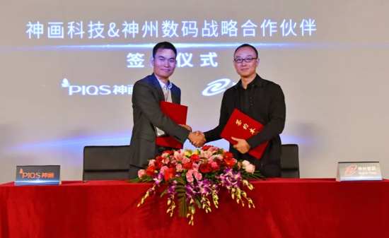 神畫科技大客戶銷售部高級總監單長忠先生與神州數碼顯示設備部產品總監李昆依先生簽署戰略合作協議。