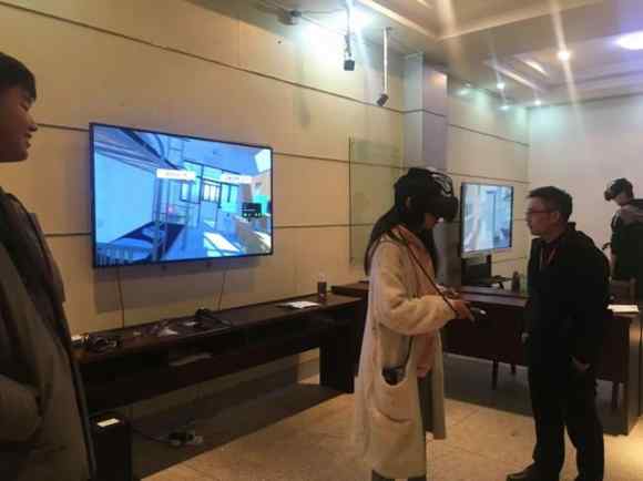 滅火實(shí)訓(xùn)系統(tǒng)搭配由 HTC VIVE虛擬現(xiàn)實(shí)頭盔、高配服務(wù)器以及 2x2 拼接顯示屏組成的VR安全教育體驗(yàn)平臺(tái),使學(xué)生在VR體驗(yàn)中“感同身受”,從而增強(qiáng)安全意識(shí)。學(xué)生還可以體驗(yàn)危險(xiǎn)環(huán)境下逃生技巧,增強(qiáng)逃生本領(lǐng)。