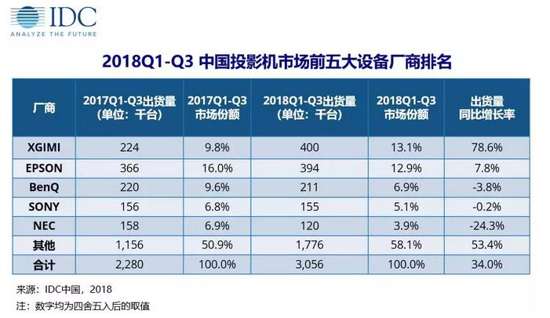 成立于2013年的極米科技,憑借“顛覆式創(chuàng)新”,五年間給投影市場和消費者帶來了諸多驚喜。本月初,全球權(quán)威市場調(diào)研機(jī)構(gòu)IDC發(fā)布了《IDC中國投影機(jī)市場季度跟蹤報告,2018年第三季度》,數(shù)據(jù)顯示,2018年前三季度,極米科技以40萬臺的出貨量位居第一,成為了首個登頂中國投影機(jī)市場的國產(chǎn)品牌。CCTV-1《新聞聯(lián)播》、新華社、《科技日報》、《中國新聞周刊》、《經(jīng)濟(jì)參考報》等主流媒體均給予了極米高度認(rèn)可和肯定。