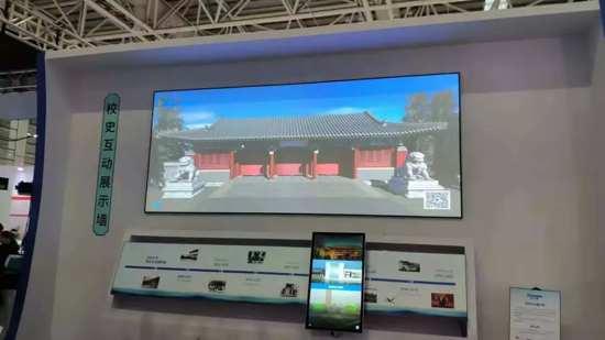 同時(shí),為了凸顯在多個(gè)領(lǐng)域的雄厚實(shí)力,東方中原還展示了校史互動(dòng)展示墻的展示,該展示墻由投影機(jī)融合成的超寬畫(huà)面和互動(dòng)顯示系統(tǒng)組成,用戶可以在觸控一體機(jī)上通過(guò)甩動(dòng)操作將感興趣的圖片或者視頻發(fā)到上方的投影顯示墻面上,該系統(tǒng)主要應(yīng)用于校史館或者博物館互動(dòng)展示等領(lǐng)域。