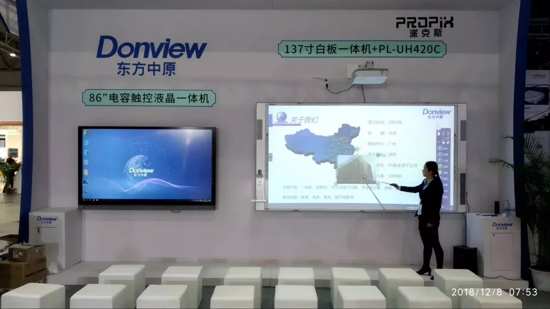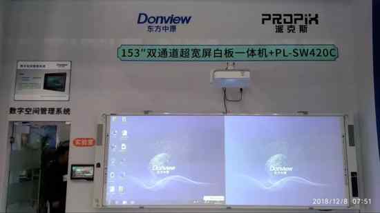 東方中原在現(xiàn)場(chǎng)打造了多套解決方案,包括137寸白板一體機(jī)及超寬屏153寸解決方案。東方中原白板一體機(jī)是集電子白板、中控、電腦、功放音響、視頻展臺(tái)等多種設(shè)備于一體的多媒體智能教學(xué)產(chǎn)品,并具備外形美觀、無(wú)外露連接線等特點(diǎn)。采用安卓和Windows雙系統(tǒng)設(shè)計(jì),性能穩(wěn)定,安裝簡(jiǎn)單,功能強(qiáng)大,兼容性強(qiáng),減少多媒體設(shè)備維護(hù)對(duì)教學(xué)的影響。目前該產(chǎn)品廣泛應(yīng)用于教育、商用等領(lǐng)域,給人帶來(lái)更加強(qiáng)烈的視覺(jué)沖擊感以及良好的觸控操作,減少了眾多傳統(tǒng)的設(shè)備連接、布線、調(diào)試的煩惱。