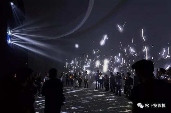 本項目是松下將最新技術(shù)結(jié)合Air Inventions理念進(jìn)行展示。每臺PT-SRQ32KC 激光投影機(jī)(中心亮度27,000流明)均搭載雙驅(qū)動激光光學(xué)引擎,可在全天候運行的情況下保持持久亮度,呈現(xiàn)色彩豐富、對比度高的4K+圖像。結(jié)合松下魚眼鏡頭ET-D3LEF70C,使用較少臺數(shù)的投影機(jī)就能實現(xiàn)更廣的畫面覆蓋范圍,可實現(xiàn)全穹頂畫面投影。為了增強(qiáng)裝置的體驗感,也便于游客在黑暗中導(dǎo)航,額外安裝一臺三芯片DLP™ 投影機(jī)PT-SDZ21K2C(中國型號)由頂部向地面投影。