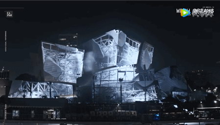近日,為了紀念洛杉磯愛樂樂團成立100周年,在洛杉磯的標志性建筑華特•迪士尼音樂廳(Walt Disney Concert Hall)的外立面上上演了一場三維投影的夢幻燈光秀。