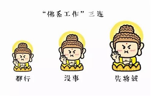 不知道是不是因為對于方方面面的焦慮無可奈何的原因,從某個時候開始,遇上事很多年輕人都開始說自己信了佛,將「佛系」二字作為自己的生活指南,凡事「隨緣」,以達淡然。甚至在工作中,也用「佛系工作三連」——都行,沒事,先將就,來逐漸養成沉穩的內心。