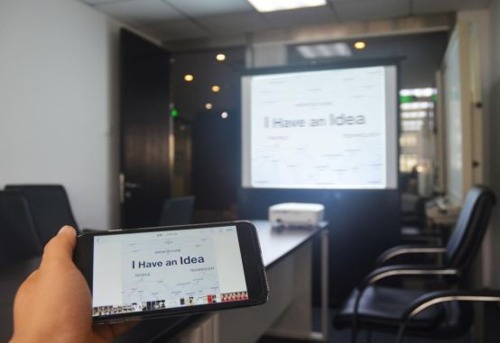 以前無電腦不能投影,現在拿出手機或者平板,就能無線投影,手機里的文件再也不用傳來傳去。