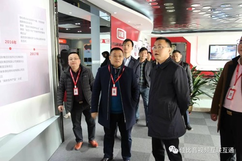 集團(tuán)總裁吳明峰向龐縣一行介紹了佳比集團(tuán)總部的情況,并詳解了佳比全國各自營分公司的快速推進(jìn)落地和國際業(yè)務(wù)的蓬勃發(fā)展。龐縣長一行走進(jìn)佳比音視頻互聯(lián)互通展區(qū)、生產(chǎn)車間、研發(fā)中心,詳細(xì)考察了佳比的研發(fā)、生產(chǎn)及產(chǎn)品情況。在產(chǎn)品體驗(yàn)的過程中,領(lǐng)導(dǎo)們對我司AVC音視頻互聯(lián)互通解決方案及相關(guān)產(chǎn)品頗感興趣,并對我司產(chǎn)品在音視頻領(lǐng)域所做的努力及成果表示由衷的贊賞。