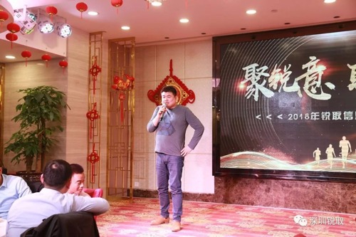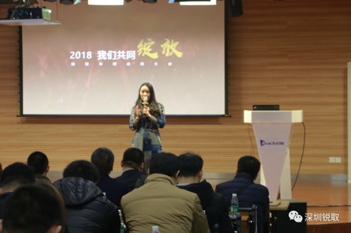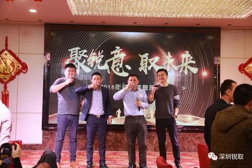 2018年2月2日,銳取召開年終總結大會。會上,銳取董事長張秋、副總經理廖海、副總經理侯大鵬及市場總監吳蕾,回顧2017,展望2018。