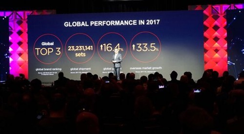 其實這已經不是TCL第一次成為2018年彩電行業熱議的話題明星。在1月初結束的國際消費類電子展覽會(即CES)上,TCL便引起了全球媒體關注。此次CES TCL不僅展示了最新的X5、C6、P5三大系列產品,以及圍繞QLED量子點技術與AI技術為核心的未來科技布局等內容。在CES全球發布會上,TCL集團副總裁、TCL多媒體CEO王成還公布了去年全年營業數據:2017年TCL多媒體累計LCD電視銷售量達到了23,231,141臺,同比增長16.4%,實現五年來最強勁增長。其中北美市場表現突出,全年銷量同比增長131.5%。另外,TCL在2016年底便突破了2000萬臺銷售量位列全球前三,到2017年再度超額完成全年銷售目標,穩坐了全球彩電行業前三的寶座。
