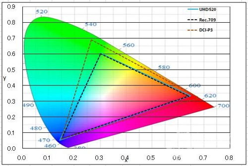 奧圖碼UHD520滿足100%國際HDTV的 REC.709 色域標準