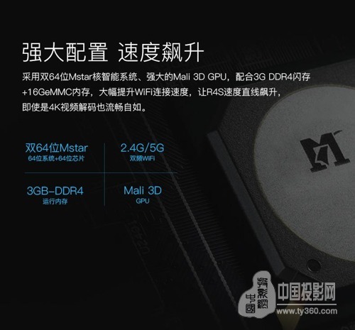 僅僅是分辨率和亮度遠(yuǎn)遠(yuǎn)不夠,智能產(chǎn)品還需要出色的硬件配置來支撐這兩項(xiàng)關(guān)鍵指標(biāo),試想一下,本來看著一部高清的影片,時(shí)不時(shí)的一卡一頓,讓人十分不爽。酷樂視R4S采用了Mstar雙64位核智能系統(tǒng)和Mali 3D GPU圖像處理器,并搭載了出色的3G DDR4 RAM,這款運(yùn)存也正是目前IPHONE X所采用的,整機(jī)運(yùn)行效果十分出色,不管操作還是解碼或觀看視頻,都沒有卡頓的現(xiàn)象,用戶體驗(yàn)良好。