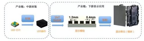 圖2 SMD分立器件小間距LED顯示技術路線及產業鏈