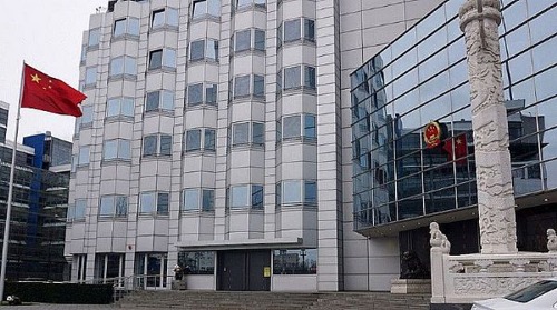 (莊嚴肅穆的中國駐德國大使館外景)
