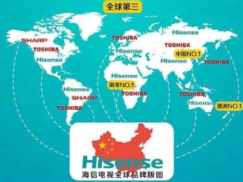 2017年11月,海信集團旗下上市公司海信電器股份有限公司與東芝株式會社在東京聯合宣布,東芝映像解決方案公司股權的95%正式轉讓海信。轉讓完成后,海信電器將享有東芝電視產品、品牌、運營服務等一攬子業務,并擁有40年的東芝電視全球品牌授權,預期將于2018年2月底完成交割。至此,海信已手握Hisense、Toshiba和Sharp(美洲)三大品牌。