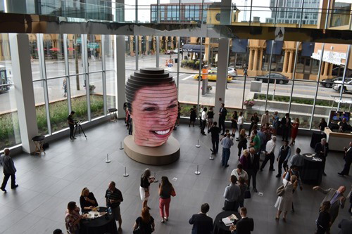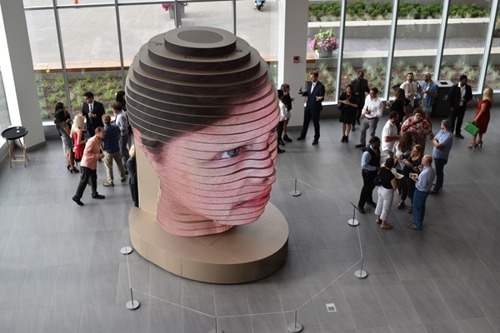 在美國(guó)哥倫布市會(huì)議中心,屹立著一個(gè)巨型3D雕塑,能夠清晰顯示自拍者的頭像,讓你一眼就能認(rèn)出:哈哈,這就是自己啊。而這塊巨大的3D雕塑,是由3000個(gè)定制的LED面板,和超過(guò)850000個(gè)LED燈組成,這些都是由上海三思締造的。