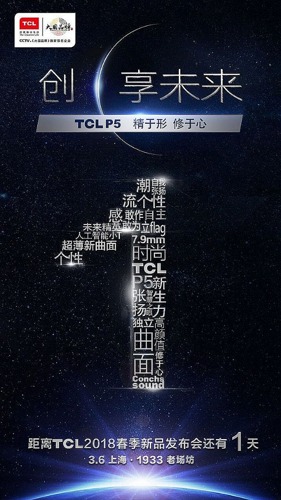 TCL春季新品發(fā)布會將在3月6日在上海隆重舉行,TCL 旗下的QLED X/C/P三系列新品將會全線震撼發(fā)布,屆時會給大家?guī)碓鯓拥捏@喜呢?從流出的宣傳畫來看,本次發(fā)布會的主題是“創(chuàng)享未來”,更是不由讓人遐想連篇。