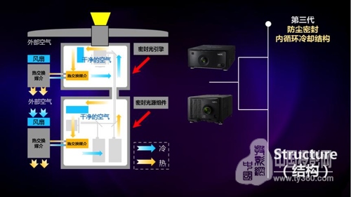 NEC獨家雙腔體防塵CCT內循環冷卻結構針對高亮度產品進行了優化