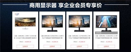 在剛剛開業的三星顯示器自營商用旗艦店,企業用戶可以選購到多款三星商用顯示器。企業會員購買34英寸1500R大曲率高分辨率曲面顯示器、23.8英寸PLS廣視角旋轉升降顯示器等三星商用顯示器,可以惠享企業會員專享價。例如,34英寸1500R大曲率高分辨率曲面顯示器秒殺價6999元,比原價12999元低了6000元;而23.8英寸PLS廣視角旋轉升降顯示器只要1649元,并可享受滿額減優惠,批量采購或與其他商品打包采購,讓利幅度更大。