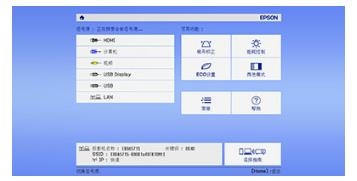 圖標式主控屏。愛普生的主控屏功能,可以幫助用戶通過圖標界面,直接訪問到常用的投影功能和接入信號源,在進行投影操作時,用戶就不需要浪費寶貴的時間去一步步查找常用功能,方便操作直觀更易用。