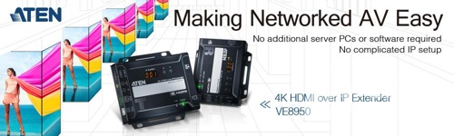 全球領先的IT連接和訪問管理解決方案提供商ATEN宏正,發布了公司旗下第一個專業級over IP影音解決方案--VE8900/VE8950 over IP的影音信號延長器。ATEN宏正VE8950能夠通過普通千兆網絡傳輸視覺上無損的4K@30Hz(4:4:4)低延遲影音信號,而VE8900型號支持最高1080p的分辨率。這是ATEN宏正第一次嘗試進軍over IP影音市場。VE8900/VE8950兩款產品也會支持視屏墻功能,為當今大規模部署的多顯示器,1080p/4K指示牌系統提供一個有效、易用、實惠的解決
