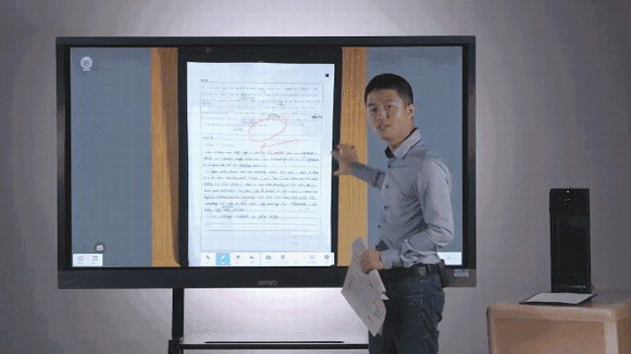 結(jié)合希沃交互智能平板,老師還可以在平板上對展示畫面教學(xué)聯(lián)動的書寫批注、放大縮小、移動旋轉(zhuǎn)等操作,進(jìn)行高效講解。還可通過掃描功能,將文本保存成圖片,進(jìn)行編輯、批注,隨時調(diào)用。
