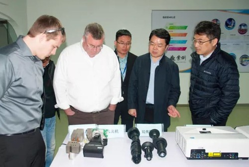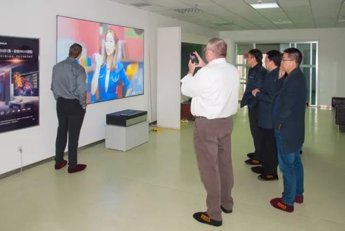 近兩三年,中國市場的激光投影產品銷量呈爆發式增長。專業調研機構的數據顯示,自2005-2017年,無論是銷售數量還是銷售額,年增長率均超過100%,2017年激光顯示產品市場總量已經突破百億。中國市場的巨大潛力吸引了越來越多業界巨頭的目光。近日,全球領先的半導體公司“美國德州儀器公司”(Texas Instruments,簡稱TI)美國總部DLP事業部的James、Tim、TI中國區市場總監Bill等一行四人來到視美樂參觀交流。