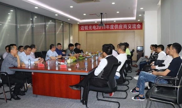 3月28日下午,邁銳光電2018年度供應商交流大會在邁銳光電深圳總部順利召開,福日電子總裁溫春旺先生,福日電子董事會秘書、邁銳光電董事長許政聲先生,邁銳光電總經理薛增冰先生以及邁銳光電的全國合作供應商代表共同出席了此次會議。
