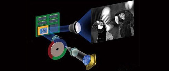 單色激光光源以藍(lán)色激光為核心,配合熒光粉色輪形成白光,然后再利用色輪分色。雖然與傳統(tǒng)燈泡相比色彩更有優(yōu)勢(shì),但其實(shí)單色激光的色彩也并不十分準(zhǔn)確。首先由于紅色和綠色是由色輪分色產(chǎn)生的,因此單色激光產(chǎn)品始終無(wú)法完美顯示紅色和綠色畫(huà)面。第二就是藍(lán)色激光螢光輪有技術(shù)瓶頸,熒光粉色輪始終高壓運(yùn)轉(zhuǎn),容易產(chǎn)生色彩漂移。
