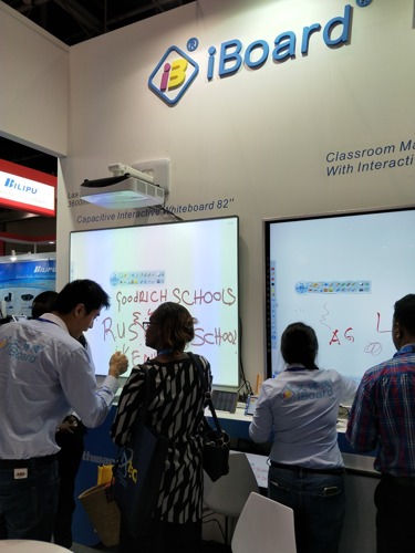 展會現場有來自45個國家和地區的450個品牌參展,專業觀眾超過1萬名。艾博德股份旗下的液晶觸摸一體機、激光投影機以各自獨特細膩的畫質、精彩的呈現效果、完美的觸摸體驗的特點廣受業內所推崇,充分展示了艾博德股份在顯示領域卓越的技術水平和創新能力。在開展的第一天,激光投影機搭配大尺寸電子白板就吸引了眾多客戶前來觀看,并有不少客戶有意向購買,客戶對于本次展示的產品及方案給予了肯定,表示愿與企業長期合作,實現雙方互利共贏,同時希望艾博德能夠發揮優勢,開發更多教育需要的高新產品和互動方案,更好地為實現兩國教育信息化服務。