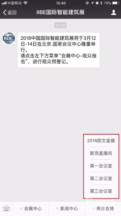 今年,除了開通圖文直播速遞展會現(xiàn)場盛況外,展會組委會聯(lián)合《智能建筑》雜志社、新浪家居創(chuàng)新推出了《新聞直播間》欄目,展會期間,觀眾可通過微信公眾號菜單欄直接進(jìn)入直播頻道。據(jù)悉,直播間開播的幾個小時里,在線人數(shù)便達(dá)到上萬之多。