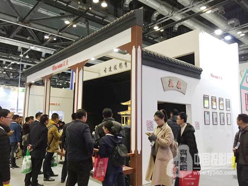 本次展會上,贏康的展位以中國古典建筑的形象出現,利用傳統樓宇造型作為投影載體,并通過聲音、投影打造出了一個美輪美奐的展出空間,吸引了無數參觀者的目光。