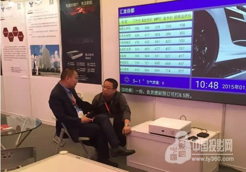 同時,三頭牛展廳也迎來了一位重量級嘉賓——京東集團高級副總裁閆小兵先生。下圖中,三頭牛CEO葉明先生(右)正在就激光電視行業前景、技術革新與閆總進行深入的交流,并就激光電視市場發展與渠道建設進行虛心請教。