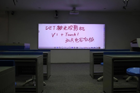 DET激光未來教室解決方案:激光投影機DET-T1+TOUCH1(超寬屏投影機+30點電容白板)