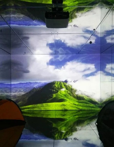 在這里,光影技術再次大顯身手:立體曲面融合顯示將武功山的前世今生,距今8~5.7億年的歷史,濃縮在一段光影之中——從大洋深海,到板塊的碰撞,再到喜馬拉雅運動,逐步形成的武功山變質核雜巖構造景觀幾乎觸手可及。視美樂8臺SML—PU550投影系統,構成3*7米的沙盤模型,利用光影和聲效向人們述說著武功山滄桑而又獨特的歷史與地質構成。