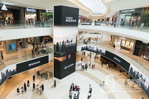 巨大高聳的電視墻為在大型圓形大廳內走動或停留在顧客服務臺的購物者及其家人提供了獨特的娛樂功能,或體驗各種促銷活動,如星巴克的Decaf Zone。