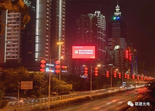 聯建光電一直以來憑穩定的產品品質以及超強的大項目生產、研發能力贏得各行業用戶的一致認可。據了解,本次聯建光電為深圳聯合智華大廈打造的是極具商業價值的深圳第一塊商用嵌入式、無包邊與建筑渾然一體電子靜態大牌項目。項目采用聯建光電高端節能F系列戶外LED顯示屏——點間距為PH16mm,面積達314㎡。覆蓋面積廣,顯示畫面清晰、逼真,吸睛能力超強。大屏采用獨創F-super超節能技術,均值功耗僅為常規產品的50%,大幅降低客戶運營成本,同時產品具備運行穩定、色彩均勻、對比度高、畫面靚麗自然、超寬視角等特點,覆蓋核心主流受眾。本項目主要用于播放商業廣告,為深圳市民提供更多更廣的商業資訊。