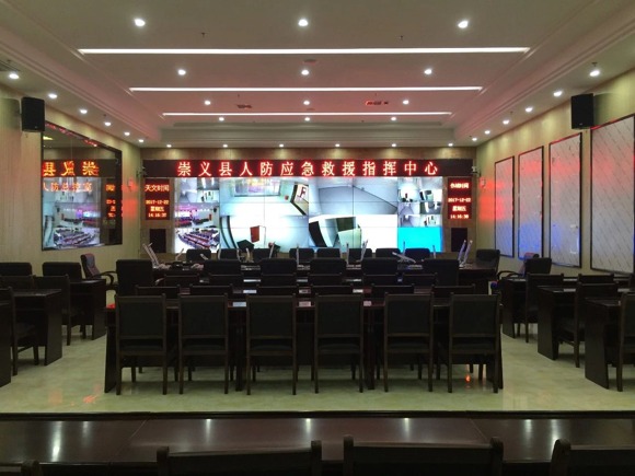 在召開本地會議時,系統(tǒng)滿足遠程電話會議、視頻會議,無縫切換管理各類音視頻信號,傳輸顯示在會議室LED大屏上,有效地通過平臺保護國家和人民生命財產安全,提高人民防空的整體抗毀能力、快速反應能力、應急救援能力和自我發(fā)展能力,以應付現(xiàn)代戰(zhàn)爭及重大災害事故。不僅實現(xiàn)了對崇義全縣人防信息的掌控,也為指揮調度和管理決策提供了強有力的支持。