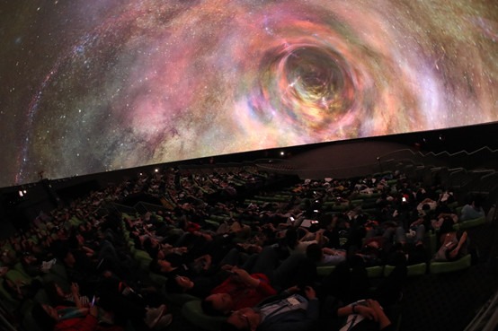 觀影環節的高清晰度超大畫面,為觀眾帶來騰空穿云、遨游太空的逼真星空模擬體驗,讓觀眾仿佛身臨一幕幕驚險震撼的場景之中。