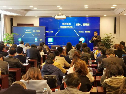 同時,針對學校的管理者或者專職的電教老師進行了希沃信鴿系統的培訓。希沃教務事業部總經理郭瀟以幽默風趣、簡單易懂的語言進行培訓。希沃信鴿是基于數據分析的發展性教學評價系統,它通過教學數據分析為教學管理者的教師工作評價與教學決策提供客觀建議,幫助其優化全校的教學管理。希沃信鴿首次走進上海市崇明區,受到了當地學校管理者的一致稱贊。