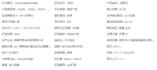 極米Z6部分參數