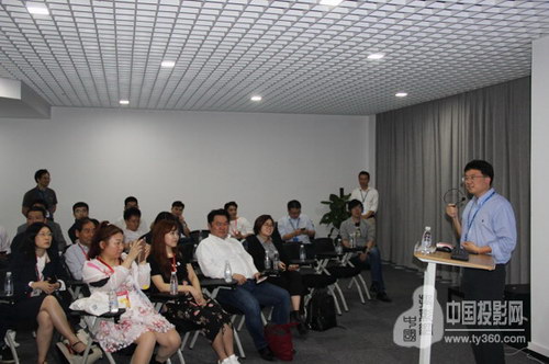 光峰光電創(chuàng)始人李屹博士正在為博士團(tuán)介紹ALPD激光顯示技術(shù)